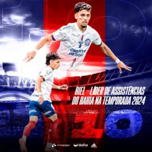 Que temporada fez o atacante Biel. Ele terminou o ano de 2024 como o líder de assistências do Bahia. Foram 10 passes...